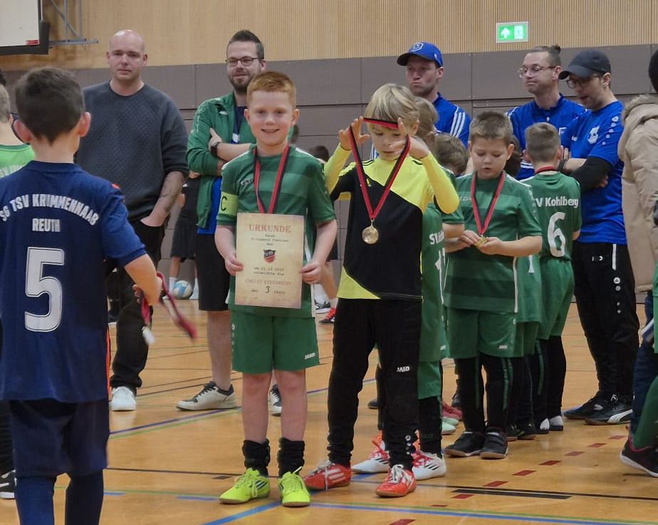 Am Sonntag, 21.12.2025, nahm unsere F-Jugend am Weihnachts-Cup des VfB Weiden in der Realschulturnhalle in Weiden teil. Nach einer klasse Leistung in der Vorrunde ohne jeglichem Gegentor, musste unser Team gegen den FC Tirschenreuth im Halbfinale ran. Dieses ging leider verloren. Im Spiel um Platz 3 gewannen sie wieder mit 1:0 gegen die SG Mantel. Somit war der 3. Platz fix und die Freude über die Medaille riesig. Der FC Tirschenreuth gewann das Turnier. 🫶🏻⚽🏆